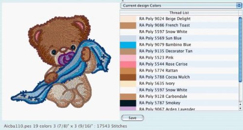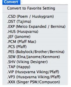 ◦Convert designs between different embroidery formats including most home embroidery machine types. Colorize designs in PES and VP3 with thread brands. Possibilities include ARC, Isacord, Hemingworth, RA, Madeira, Sulky and many more.