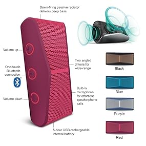POWERUL SOUND DESIGNED FOR PERFORMANCE. Play your music out loud anywhere in big, bold sound. A completely new go-anywhere design with unique angled drivers pumps out a more expansive sound spectrum. Instantly connect your Bluetooth-enabled smartphone, tablet or laptop with one touch to enjoy music and calls in richly detailed sound.