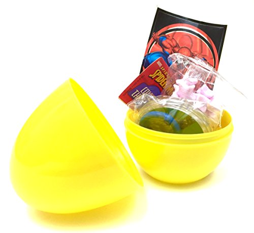 Binding : Misc. Product Description 3 new plastic Spider-Man surprise eggs. Each egg contains a Spider-Man themed surprise, a sticker, and fruit flavored candy. These are the same eggs popularized in toy unboxing videos on youtube. Your kids will love opening their very own plastic surprise eggs! NOTE: Each surprise egg contains 1 of 30 surprises and one of 12 stickers. The contents of each egg are entirely random, meaning that it is possible to receive multiple eggs with the same contents. 0