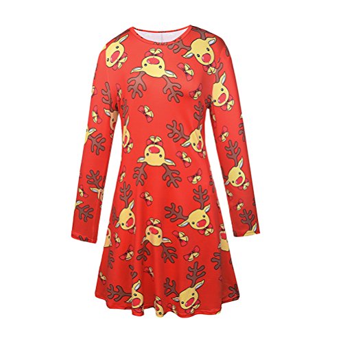 -. Feature : Novelty Christmas theme is the long lasting clothing style,at any time and occasion are suitable for women/girls wear / These Christmas Swing Dresses are Perfect for Christmas Eve,Parties & festive season / These Swing Dresses are available in Multi-Inspired Colours,P.R.Ints & have different Sizes to make every one easy to pick one suitable.Team with tights or bare legs & boots for perfect look / Soft, Stretchy and Comfortable Material which is Ideal for All Occasions / Size - Asian size smaller than your thinking, please choose the larger size and refer to the third picture (size chart) we provide.