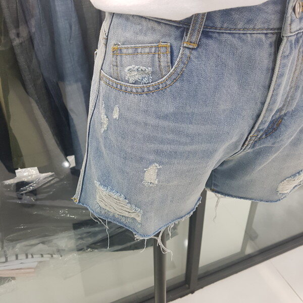 여름 신상 여성 데미지 숏데님진 입니다. 좀더 시원하고 포인트를 줄수있게 데미지가 잘표현되었으며, 색상은 라이트진, 다크진 두가지 입니다.