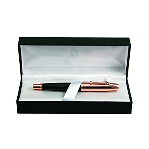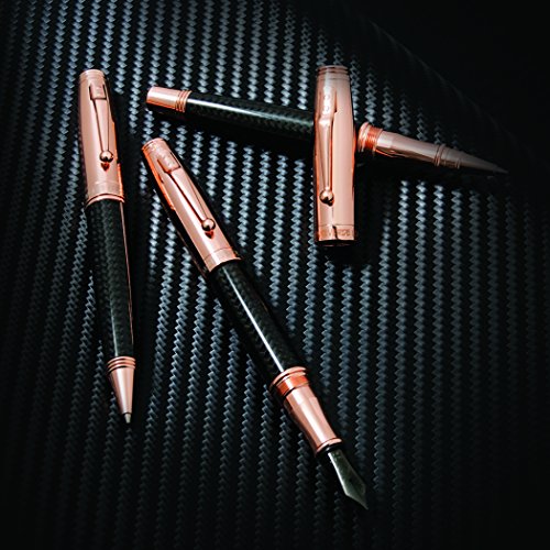 -. Feature : Fountain pen features Iridium nib and includes a cartridge converter and a ink cartridge / Black carbon fiber barrel and rose gold cap and accents / This collection offers matching Rollerball and Ballpoint pen.