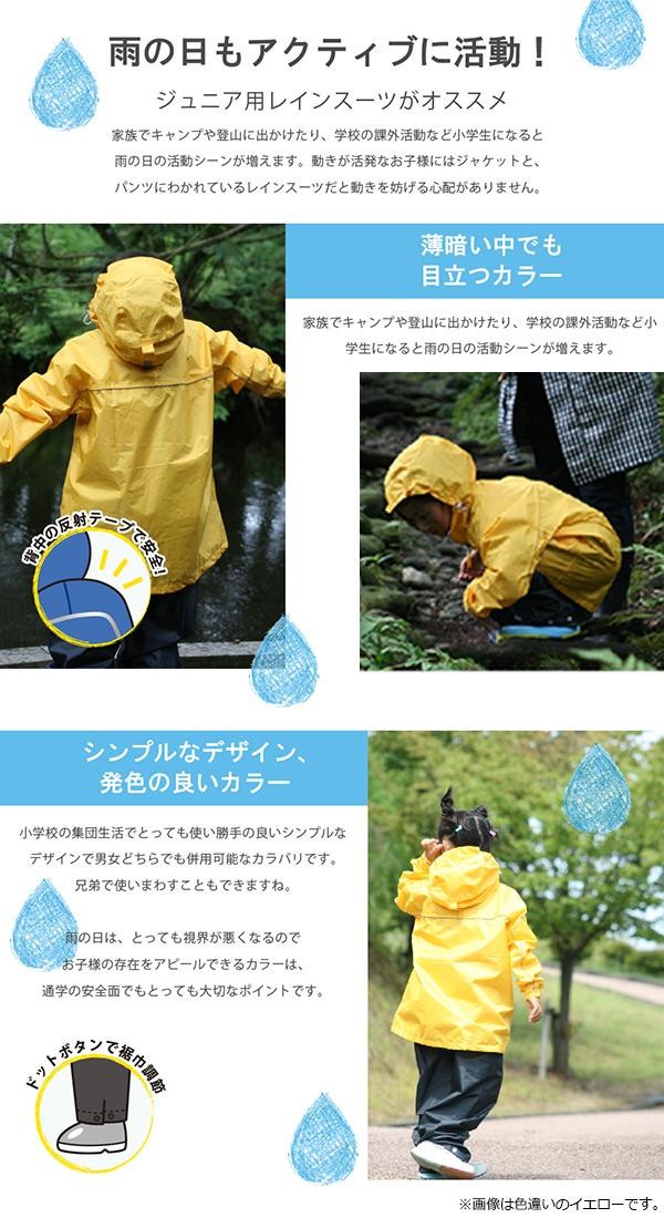 | シンプルなデザインのこども用レインスーツ。 |