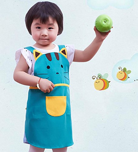 CRB Girls Boys Kids Toddler Elephant Cat Bunny Chef Baking Apron (Aqua Cat)