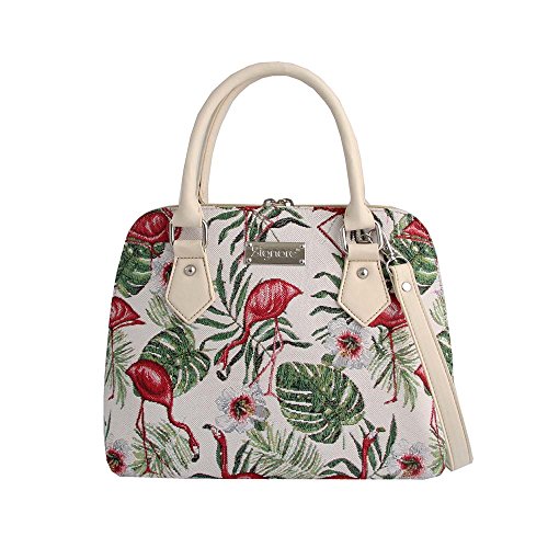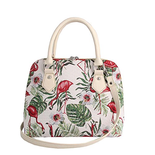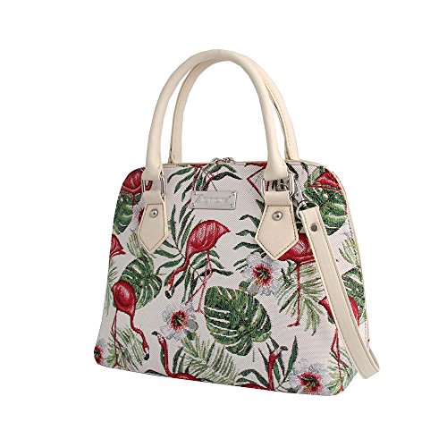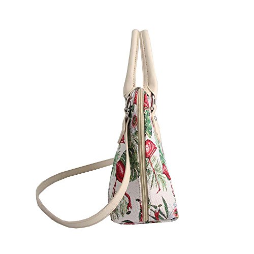 Signare Flamingo Ladies Fashion Canvas Tapestry Top Handle Handbag With Detachable Strap To Convert To Shoulder Bag by (Conv-flam)