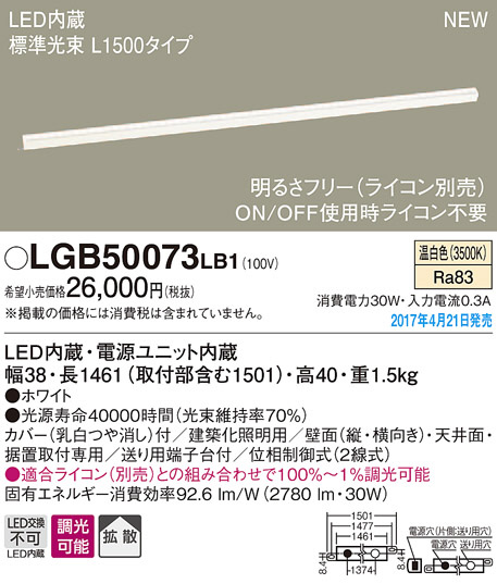 ●寸法(mm):幅38・長1461(取付部含む1501)・高40