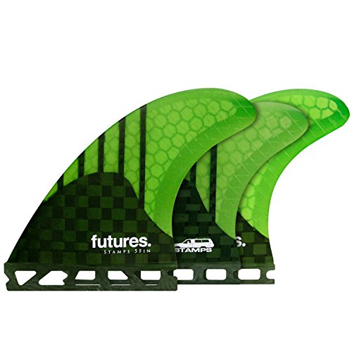 Studio : Futures Publisher : Futures Binding : Misc. Product Description Futures Stamps Generation Series 5 Fin Set. Fin Set Up: 5 fin. Fin System: Futures. Stamps series provides all the speed you need while maintaining an element of control. Construction: Generation Series carbon fiberglass blend. Fiberglass. Vendor style #: 249042750. Fin Specs: Size: Large. Rider's Weight: 65 - 88Kg / 145 - 195 Lbs. FRONT/CENTER FINS: Height: 4.46. Base: 4.45". Area: 14.84"sq. Foil: V2/SYM. QUAD REAR FINS: Height: 4.04". Base: 3.76". Area: 11.56"sq. Foil: 80/20." 0