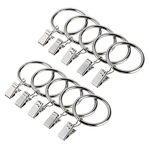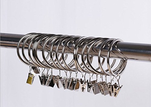 More features: * Easy to use--- Simply slide the rings onto your rod and attach drape * Classic curtain ring clips to hang your curtains, hold a lot of weight! * Give curtains a little more length so they drape on the floor, instead of sitting an inch above the floor--- Looks much better! * The rings are metal and very well out together and the slide effortlessly over the rods * Heavy duty strong enough to hold a chenille drapery panel and the clip is strong enough where the panel doesn't slip * You can use these on a shower rod inside of tub enclosure and hanging body washes and wash rags from them * You can make most any kind of curtain or drapes..cafe style..on most any rod with these fine curtain clips * Also perfect for hanging photos, drapes, and many other home uses!