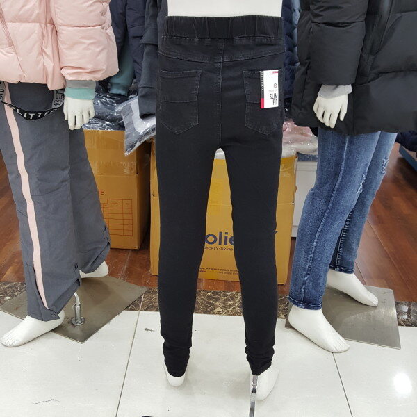 슬림 블랙 밴딩 데님 바지 입니다.슬림핏이여서 통통한 아이들은 한 사이즈크게 주문해 주세요.