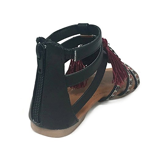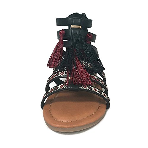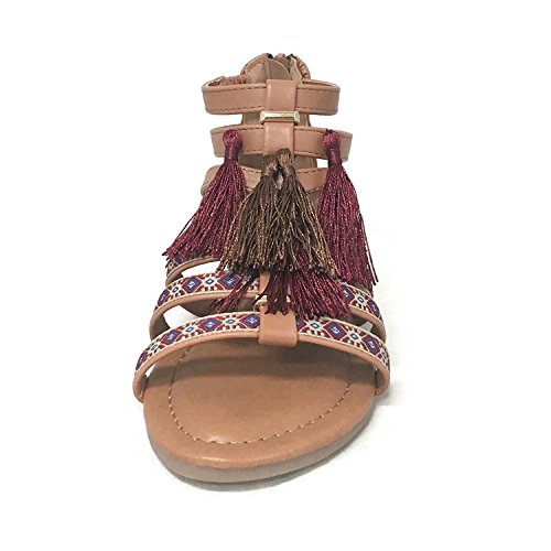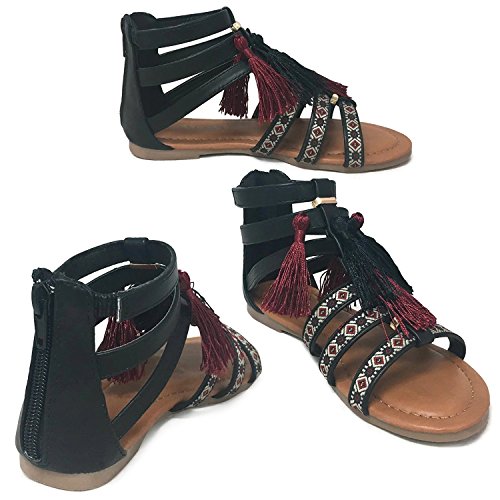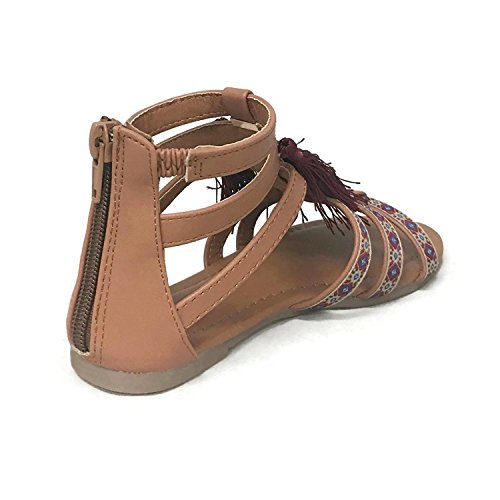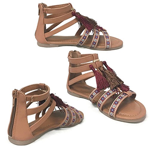 Binding : Apparel Product Description These new strappy gladiator sandals pack a mean punch--with the comfort of a flat heel and zippering closure you are going to be happy wearing these every day.? Sizes as shown.? Light weight, casual sandals for women and girls. Round toe and fringe, this sandal is fun. 0