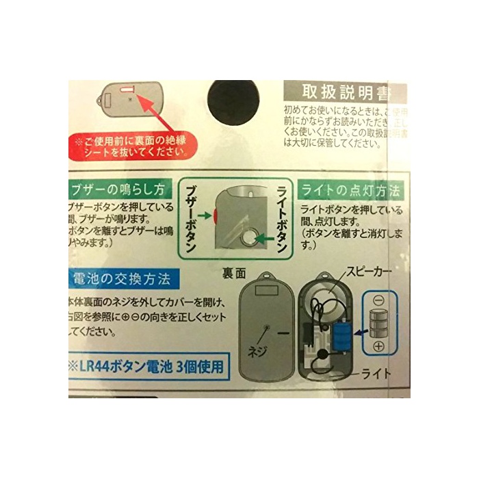 팩키지 약14×7.3×1.7cm buzzer 음량70-80dB,LR44버튼 전지3 개사용(테스트용 전지부)