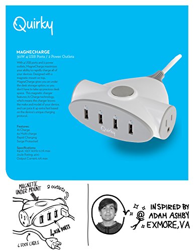 Studio : Atomi Publisher : Atomi Binding : Wireless Phone Accessory Product Description With 4 USB ports and 2 power outlets, MagneCharge maximizes your ability to rapidly charge all of your devices. Designed with a magnetic mount on top, MagneCharge gives you an under the desk storage option, so you don't have to take up precious desk space. This magnetic charger features Ai Charge technology, which means the charger knows the make and model of your device, and can juice it up extra fast based on the device's unique charging protocol. 0