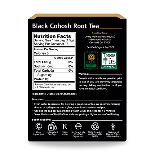 -. Title : Organic Black Cohosh Root Tea - Kosher, Caffeine-Free, GMO-Free - 18 Bleach-Free Tea Bags