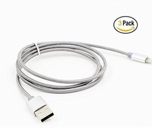 Giant star 3ft Nylon Braided Apple USB Cable for iPhone 5, 5c, 5s, 6, 6 Plus, 6s, 6s Plus,iPad 4, iPad Air 1/2, iPad Mini 1/2/3 (3 pack Grey)
