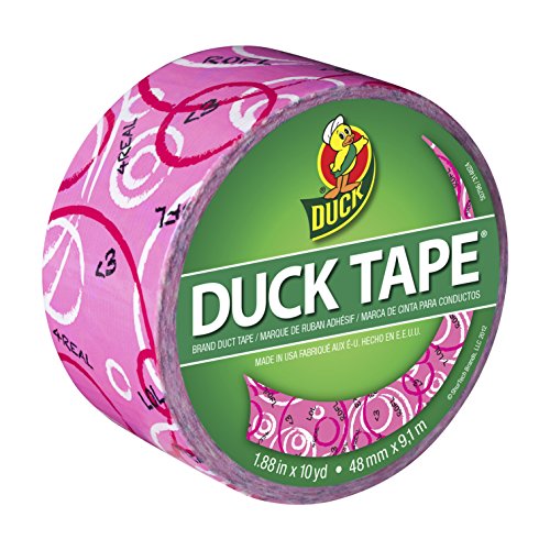 Duck Brand 281758 Printed Duct Tape, Pink Text, 1.88 Inches x 10 Yards, Single Roll