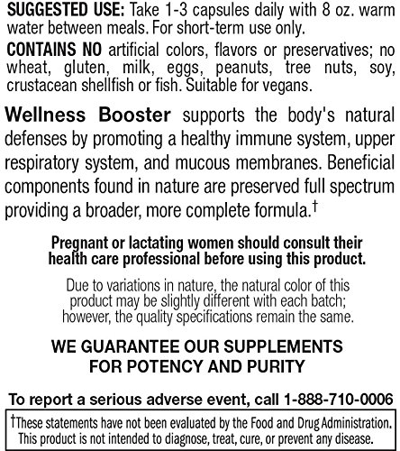 BPA-FREE GLASS BOTTLES — Designed for quality, purity and potency, our amber glass bottles seal our supplement and keep them fresh, with best-by dates and heat-sealed sleeves. Each bottle contains 50 easy to swallow, gluten free and vegan Wellness Booster capsules.