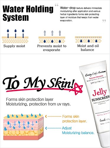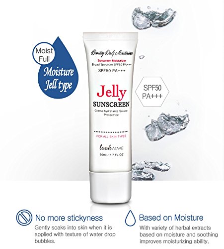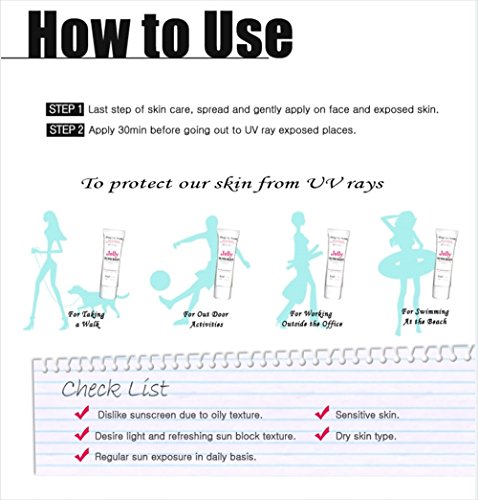 Jelly Sunscreen is a whole another level of moisturizing, oil free refreshing without stickiness and UV protection. Jelly Sunscreen is a water based gel type and moisturizes with water blast as soon as it's applied, with natural herbal extract to minimize chemical reaction. You have never experienced such comfortable UV-A and UV-B protection without stickiness. t is not water proof, but it is not easily removed from skin once you apply.