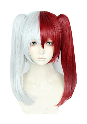 Anime Red White Cosplay Wig Clip On Double Long Ponytails Christmas Party Wigs free Cap