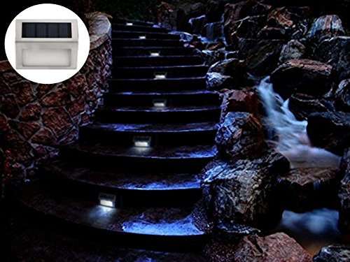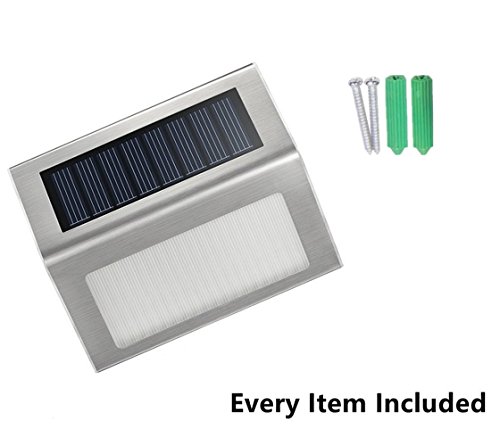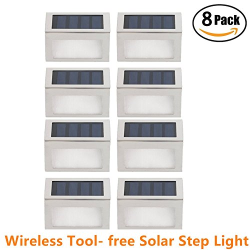 [Pack of 8] HowFine Outdoor Stainless Steel LED Solar Step Light Wireless Super Bright Modern White Lamp for Deck, Staircase, Walkway, Patio, Garden, Yard, Patio