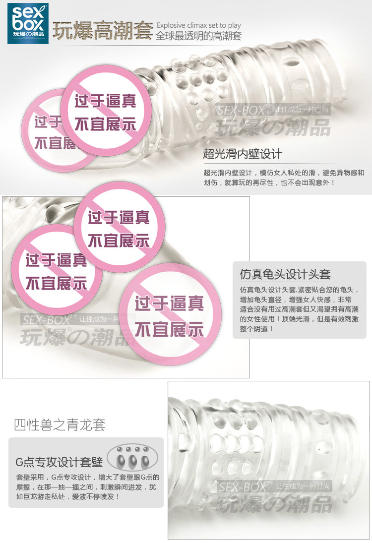 Japan high-elastic material, non-toxic green, body covered with soft spines love, will produce the most efficient of friction, so the pleasure doubled. Meanwhile, the role of solid fine delay, so that men confidently go through each experience of love.