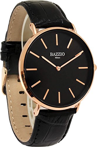 -. Title : [バッジオ]BAZZIO 腕時計 クォーツ 本革ベルト レザー 薄型 40mm ユニセックス メンズ レディース FAL50509G ブラック ローズゴールド [並行輸入品]