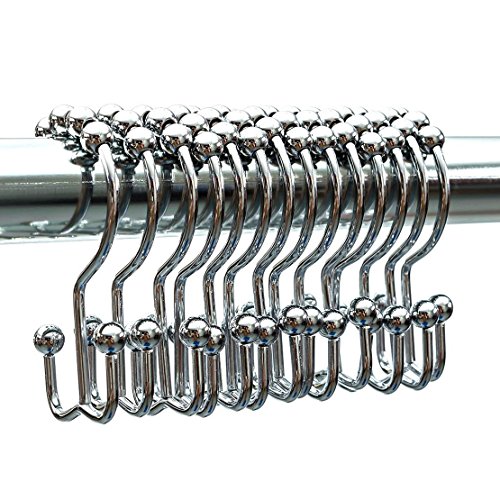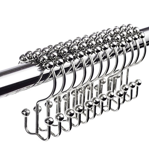 12pcs Set Shower Curtain Rings Hooks for Bathroom Shower Rod (chrome,8 roller balls,double glide,Rustproof Stainless Steel)by Yeelan
