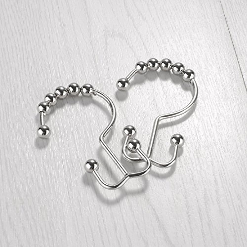 Smart Design:Double Slide;the hooks with 8 beads to allow for easy and effortless sliding of all shower curtains, prevent the shower curtain from coming off accidentally during use.