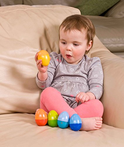 Shake things up with our Shakin Eggs. Develop your child's musical abilities early with these brightly colored eggs that all make different noises. Most are shakin' but one of the five is twisting. Can you figure out which one it is?