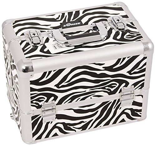 Craft Accents 6-Tiers Extendable Tray Professional Aluminum Cosmetic Makeup Case, White Zebra, 176 Ounce