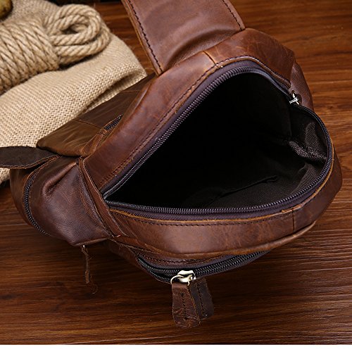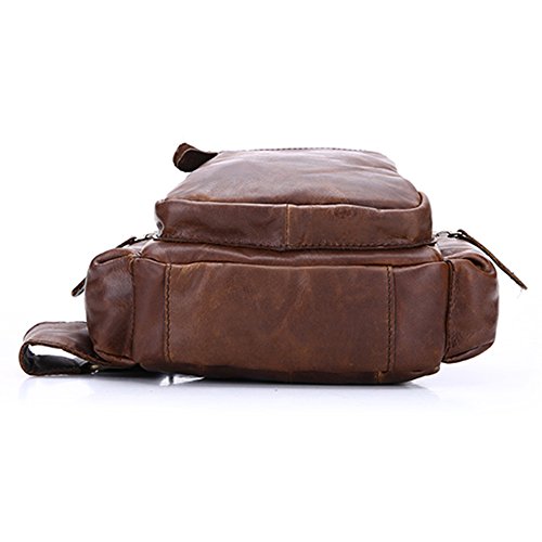 -. Feature : 100% Cow Leather Upper, 100% Leather Lining,Imported / DIMENSIONS: appr. 10.3 * 7.1 * 2.8inch / Zipper closure with adjustable padded shoulder strap / STRUCTURE: This bag contains 1 main compartment and 2 side zipper pockets. Secure and stylish single gusset construction expands for greater carrying capacity. / It is a great daypack for school, dating, shopping and traveling in daily life. It is a great gift for your boyfriend, husband, father and son.
