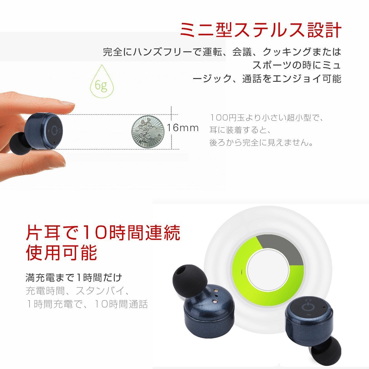 Since the earphone itself is of a canal type, it comes with an earpiece, an exquisite fitting feeling comes out, you can enjoy wireless easily.