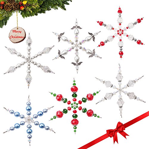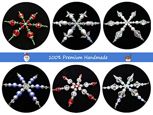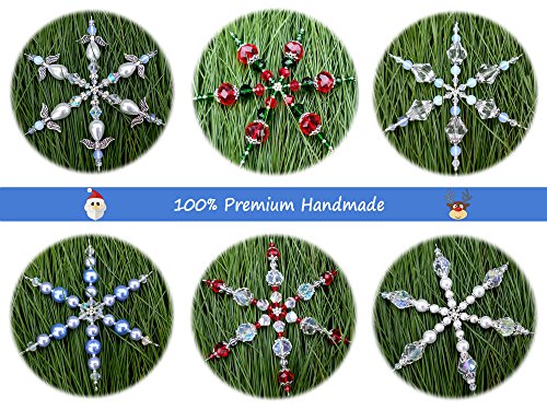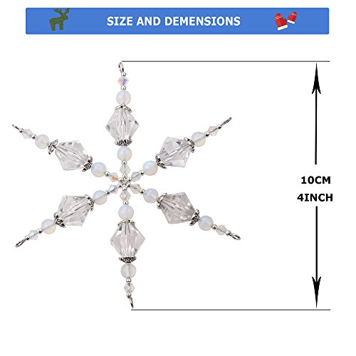 Set of 6 Handmade Beaded Snowflake Christmas Ornament Decorations with Stainless Steel Wire, 4 inches