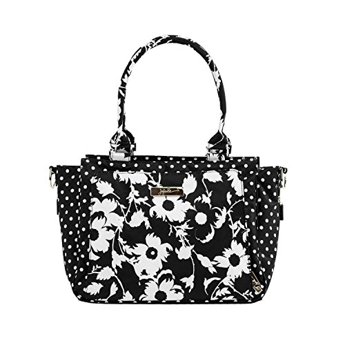 The Ju-Ju-Be Legacy Collection Be Classy Diaper Bag is like you - a class act. You might spend a majority of your days covered in baby food, or picking up the playroom for the 100th time, but have no doubt: you are still the same classy woman you have always been and will always be. Which is why we want to thank you for the inspiration behind this bag design. Thanks to the feedback from our talented fan base we were able to create the Be Classy: a bag that is a testament to the spirit of the Pink Ladies that make Ju-Ju-Be great, and the standard to which we always strive. A bag that is not only one of our most functional, tailored designs, but also possibly the most timeless. With its sleek design and adjustable messenger strap or structured handbag style carrying options, the Be Classy is the perfect culmination of your favorited Ju-Ju-Be features. A bag so functional you will bring it on your first outing with your newborn, and one so elegant you will carry it well after the diapering days are done. The bag's lining is protected with Agion natural antimicrobial treatment, which inhibits and reduces the growth of odor-causing bacteria, mold and mildew. The outer fabric is treated with Teflon fabric protector, so you can repel stains and keep it clean. The front "mommy" pocket holds keys with a stretch key fob and sunglasses (cleans lenses too.) with plenty of room for more. The main zipper pocket is large enough for diapers, wipes, extra clothes and other items. Keep organized inside with (3) gusseted pockets and (1) zippered pocket. The back pocket is designed with crumb drains to keep this area clean and includes a super cushy memory foam changing pad. The (2) bottle pockets are located on either side of the bag and insulated with Insulate to keep items warm or cold. The Queen of the Nile print is a black and white chevron with tan lining. The print is accented by gold, metal hardware, including luggage feet to keep the bottom of your bag clean when you set it down. All Ju-Ju-Be Bags come with a Lifetime Limited Warranty against manufacturing defects when purchased from an Authorized Ju-Ju-Be Dealer. Authorized Dealers can be found in the images. Founded in 2005, Ju-Ju-Be is a Southern California company that uses science, style, and attitude to create diaper bags, purses and other fashionable accessories. Ju-Ju-Be assimilated the most advanced technology possible to create a stylish and intelligent product line that's unrivaled in the industry.Feature