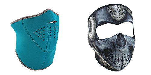 -. Feature : This Product is a 'Bundle' of 2 Neoprene Face Mask Items identified as a 'Solid Teal' and a 'Snake Skull' / The First Facemask Item is the ZanHeadgear 'Solid Teal', 3-Panel, Half Face Neoprene Face Mask / The Second Facemask Item is the ZanHeadgear 'Snake Skull' Full Face Neoprene Face Masks / Face Masks / Ski Mask Items are made of Durable, Naturally Warm & Water Resistant Neoprene Face Mask Material / Face Mask Sizes are adjustable, by up to 2 inches, using the Hook & Loop closure, located at the back of the head