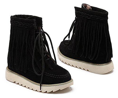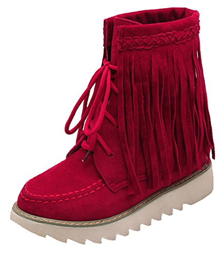 Binding : Apparel Product Description This pair of shoes is for women, girls, juniors and young ladies. You will look chic and stylish when wearing them. The heels measure 1.9 inches. You will feel comfy in their mid heels. So you will not feel too tired when walking with them. This pair of shoes features ankle high and round toe. You will look sweet in their tassel decoration. The design of round toe will offer you a chic look. It's convenient for you to wear in their lace up closure. The sole is made of good rubber. You will feel comfortable in their soft bottom. They are of high quality and durable. 0