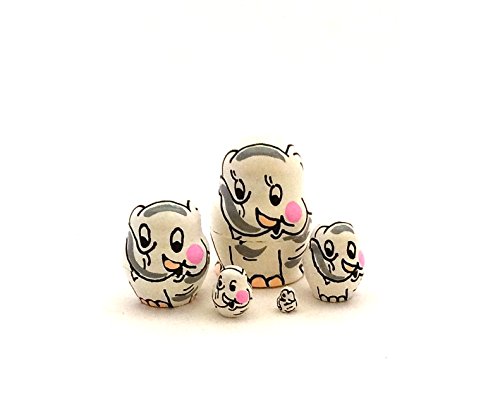 -. Title : 1.25" TALL WHITE ELEPHANT MINI nesting dolls Russian Hand Carved Hand Painted 5 piece matryoshka Set