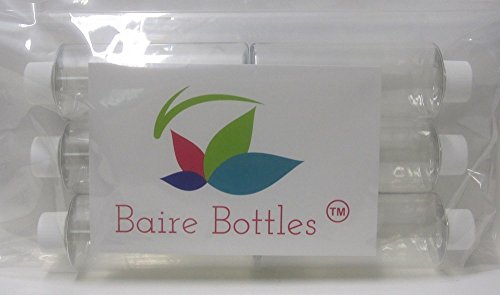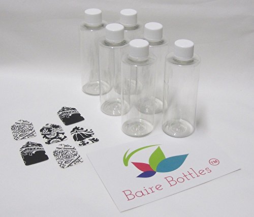 4 oz Clear Cylinder Round Plastic Bottles, White Lined Screw Caps & Gift Tags - 6 pk