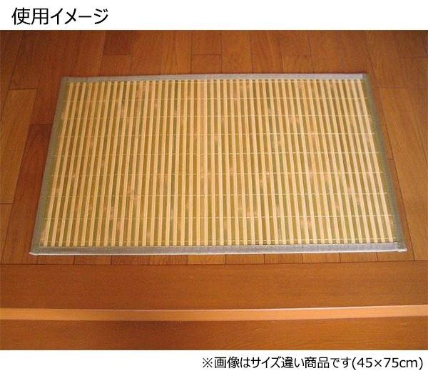 | 竹の表皮と竹の身を順番に組み合わせて縫い上げた、スッキリ涼しげな竹マット♪表面にニス塗装をすることで、素材の耐久性を高めています。裏面には不織布を使用。フローリングを傷つけにくく、更にPVCドットによるノンスリップ加工を施すことで滑りにくくなっています。 |
