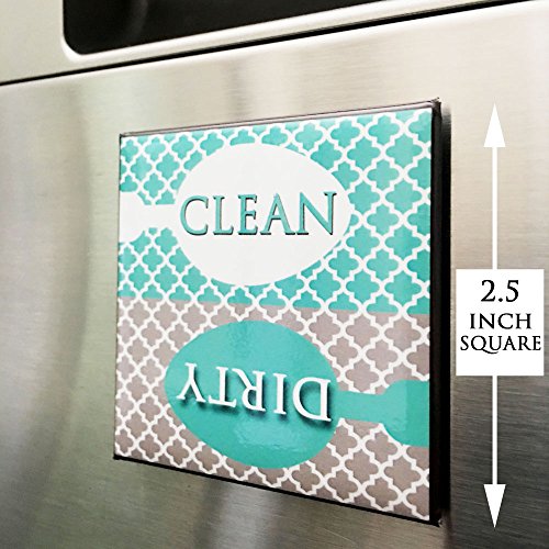 Clean Dirty Dishwasher Magnet Sign for Dishes - Elegant Quatrefoil Moroccan Trellis Modern Pattern - AQUA BLUE / GREY - 2.5 x 2.5 - Housewarming, Bridal Registry & Gag Gift Idea Stocking Stuffers