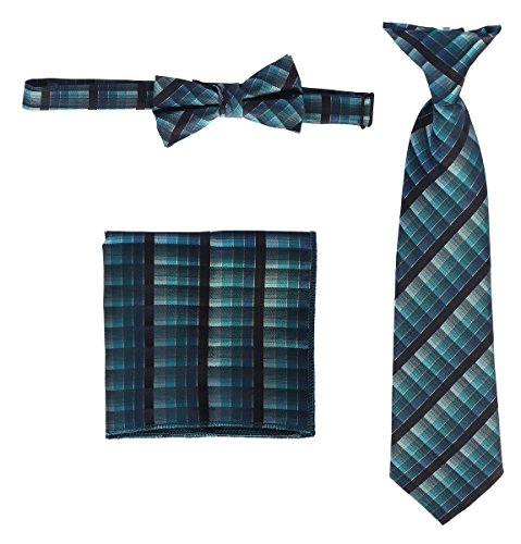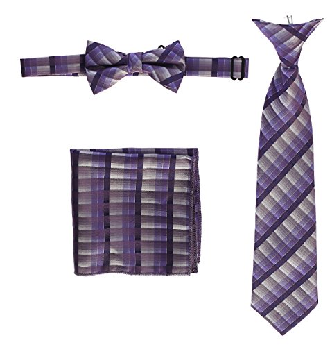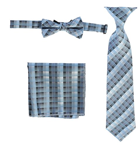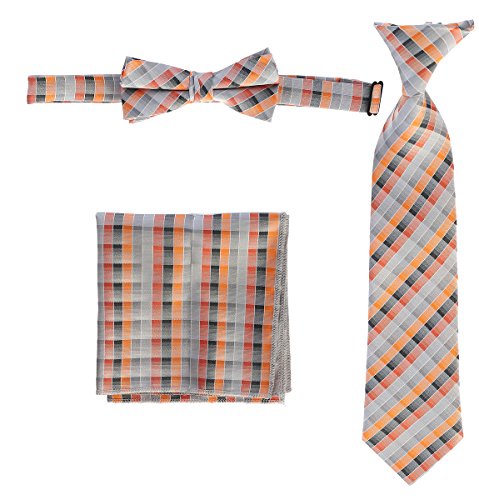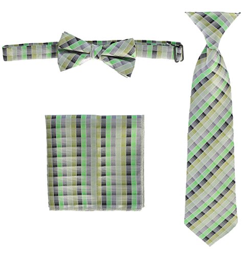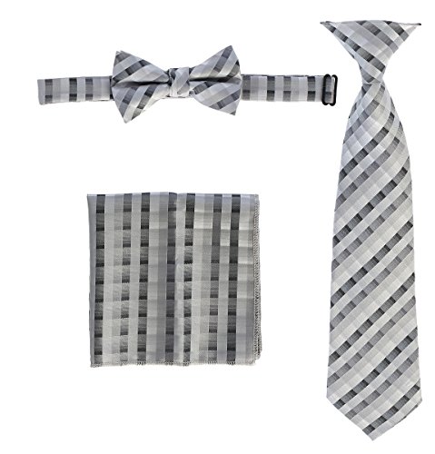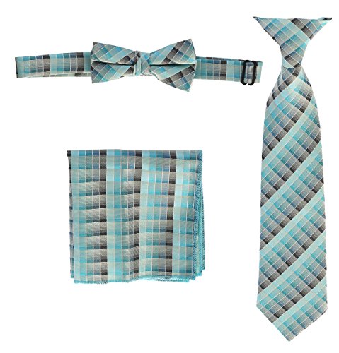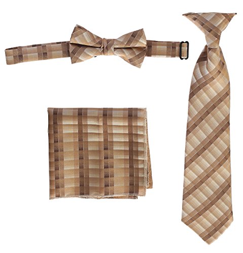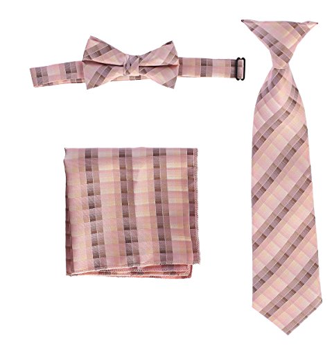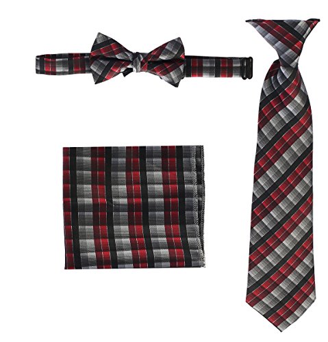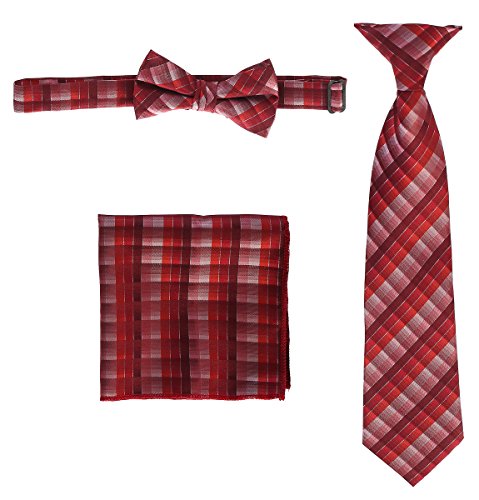 | Gioberti Boys' Plaid Clip-On Tie, Bow Tie, and Pocket Square Set |