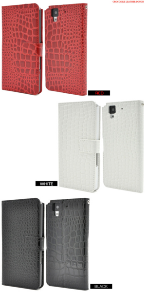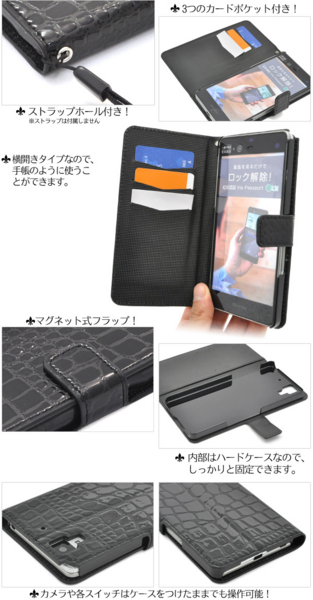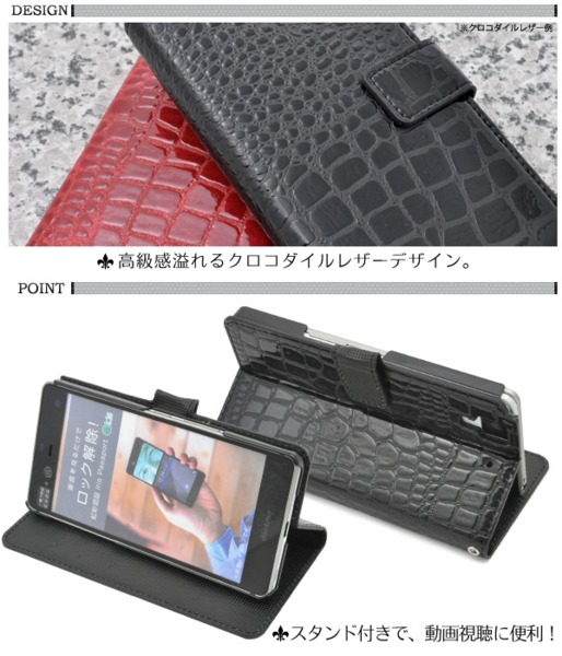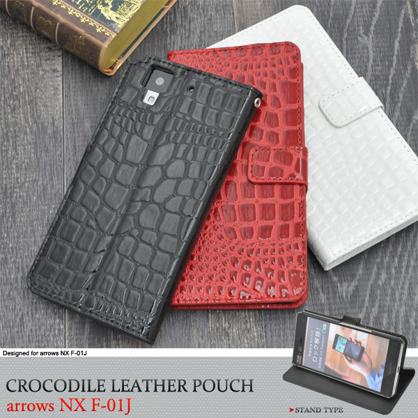 高級感溢れるクロコダイルレザーデザインのarrows NX F-01J用スタンドケースポーチ。