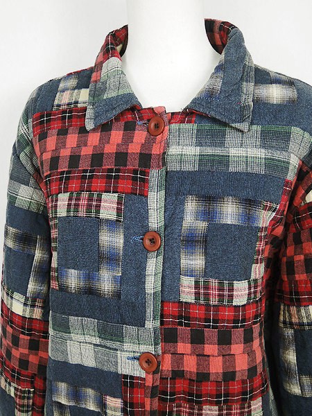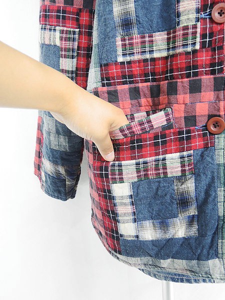Ladies ブランド- カラー赤・黒・青・水色・緑・オフホワイト メール便不可 コンディション★★★ 素材コットン/ポリエステル 表記サイズS スタッフコメント裏地あり、ポリ綿入り。白地部分などに色写りシミが全体にあります。 実寸サイズ 着丈 72 cm 身幅 52 cm 肩幅 51 cm 袖丈 55 cm ※ウエスト・ヒップ以外は平置き採寸