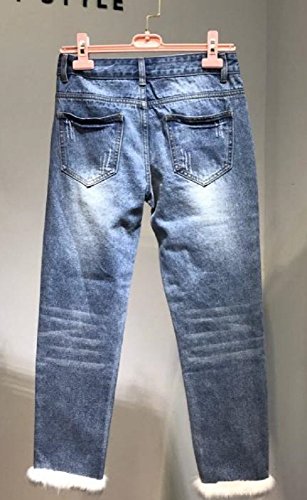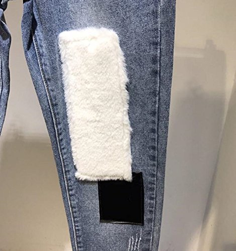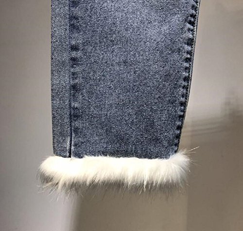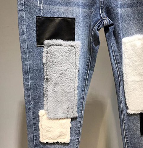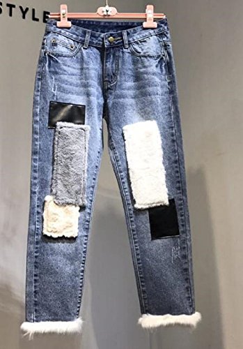 -. Title : (sleeping sheep) もこもこ フワフワ ラビットファー パッチワーク カジュアル デニム ストレート ジーンズ (26)