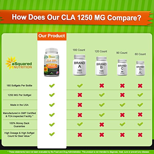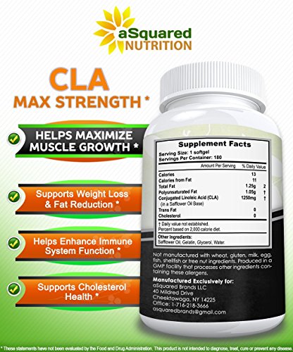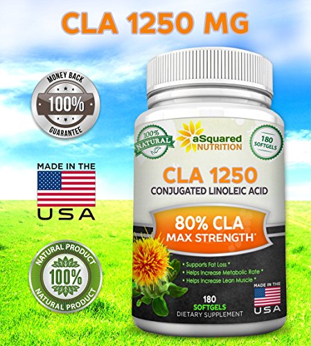 BEST NATURAL WEIGHT LOSS FORMULA - Our max potency weight loss supplement is made with 100% premium and natural ingredients. Our product is made from pure safflower oil, and each 1250mg soft gel capsule contains 80% CLA (conjugated linoleic acid) for 1000mg of active CLA. Together with a balanced diet and regular exercise, our CLA is a fantastic addition to your overall weight loss goals! *
