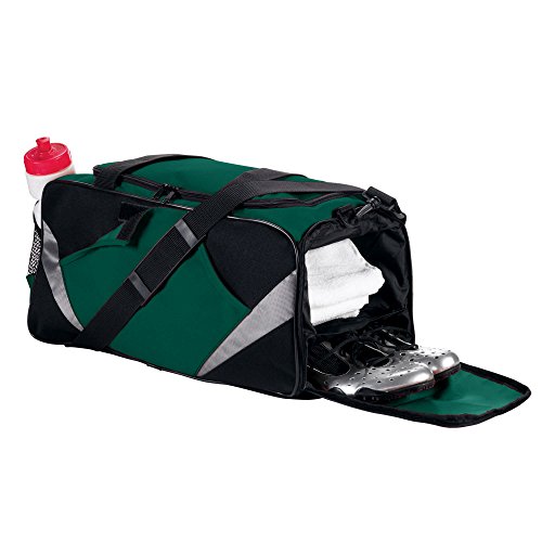 -. Binding : Misc. -. Brand : Augusta Sportswear -. Department : mens -. Feature : 600-denier polyester with durable PVC backing with shiny inserts inserts inserts*Large main compartment*Zippered front pocket removes for easy embellishment / *Adjustable detachable shoulder strap*Zippered end pockets*Writable inside handle wrapper 28 x 12 ½ -. Label : Augusta Sportswear -. Manufacturer : Augusta Sportswear -. Model : 1755 -. PackageQuantity : 1 -. ProductGroup : Sports -. ProductTypeName : SPORTING_GOODS -. Publisher : Augusta Sportswear -. Studio : Augusta Sportswear -. Title : Augusta Sportswear Game Duffel With Shoe Pocket