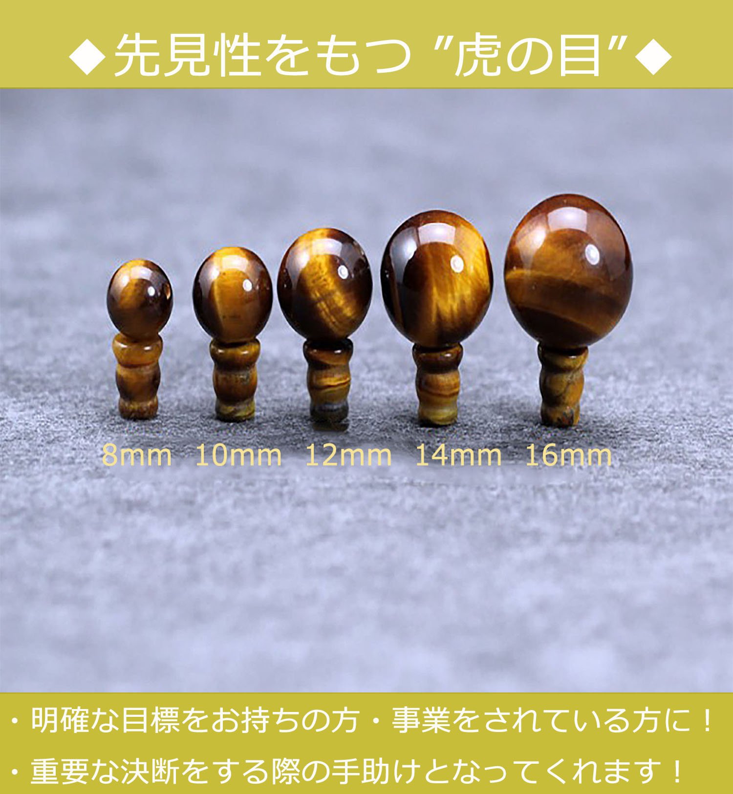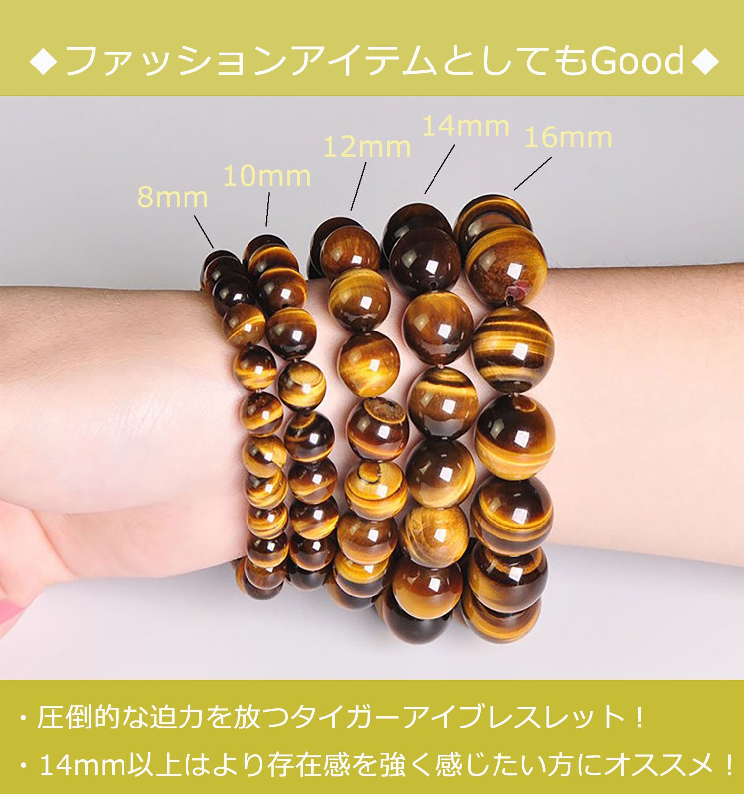 ※ The size of 14 mm or more makes the presence of Tiger Eye more