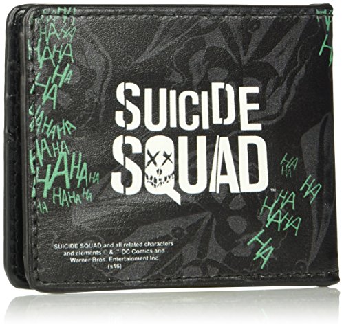 Studio : Buckle-Down Publisher : Buckle-Down Binding : Apparel Product Description This awesome men's bi-fold wallet is made from premium vegan leather. It measures 4.0x3.5x0.5 inches, and features the standard billfold, 5 card slots, and windowed id holder. The logos are applied using advanced printing technologies, so the wallet will still look good after years of hard use. This product is officially licensed by suicide squad and made in USA by Buckle-Down Inc. 0