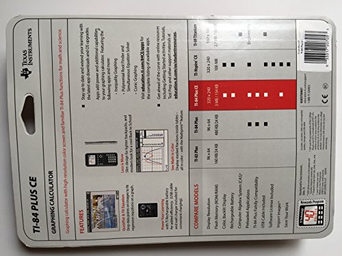 -. Feature : 2.8" color LCD with 320 x 240 pixels resolution for clear viewing. / Variety of preloaded applications Including MathP.R.Int, Cabri Jr., CellSheet, TI Testguard 4.1, Vernier EasyData and more to simplify use; Business functions: Calculate TVM (Time-Value-of-Money), cash flows and amortization with a full-screen interactive editor / 1- and 2-variable statistical analysis with With logistic, sinusoidal, linear, logarithmic, exponential, power, quadratic polynomial, cubic polynomial and quadratic polynomial regression models. Up to 10 graphing functions, Define, save, graph and analyze multiple equations at once. Stores up to ten 50 x 50 matrices as well as converts matrices to lists and lists to matrices for flexibility. / USB cable lets you connect to Mac or PC computers for ease of use. Impact-resistant slide case protects the calculator / Rechargeable lithium-ion battery