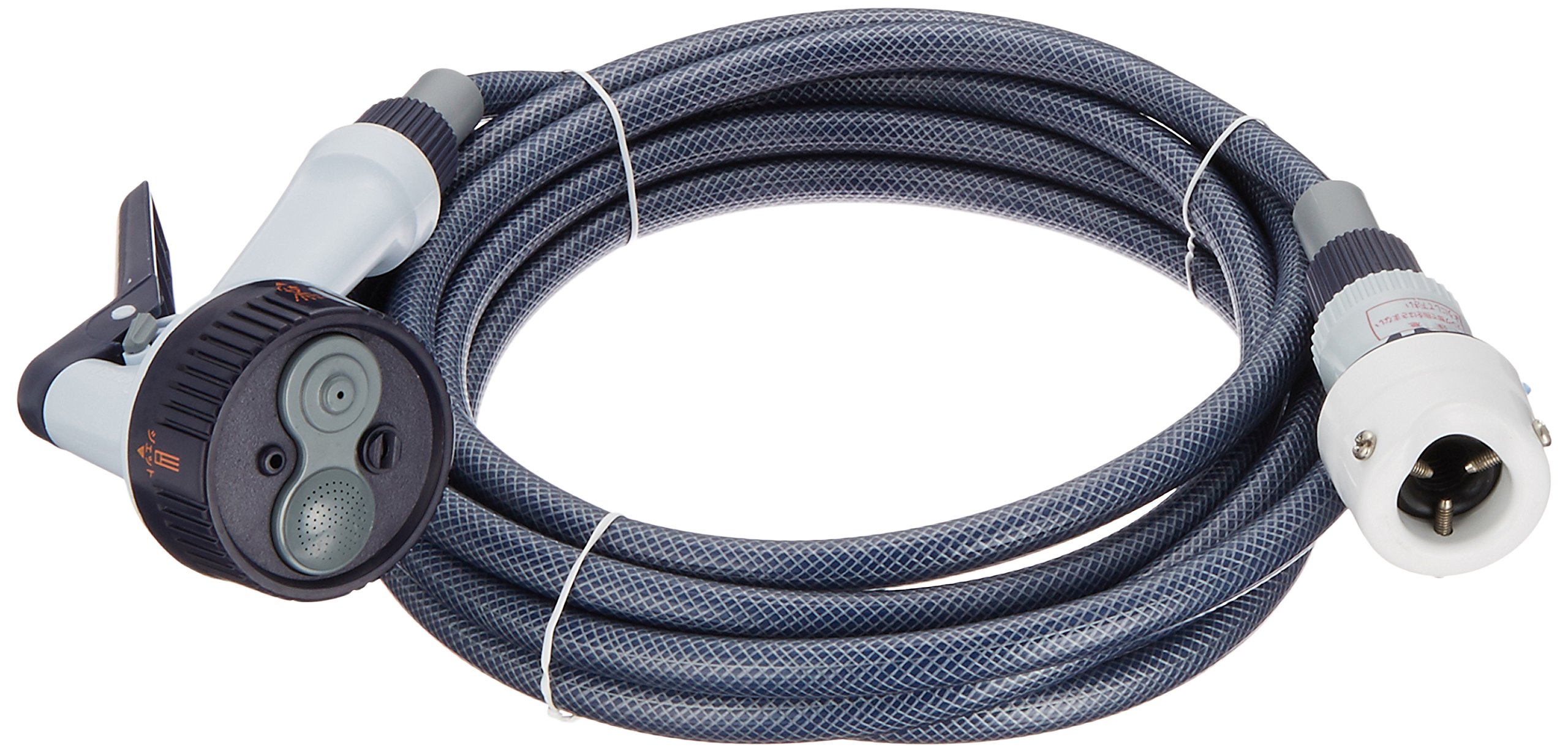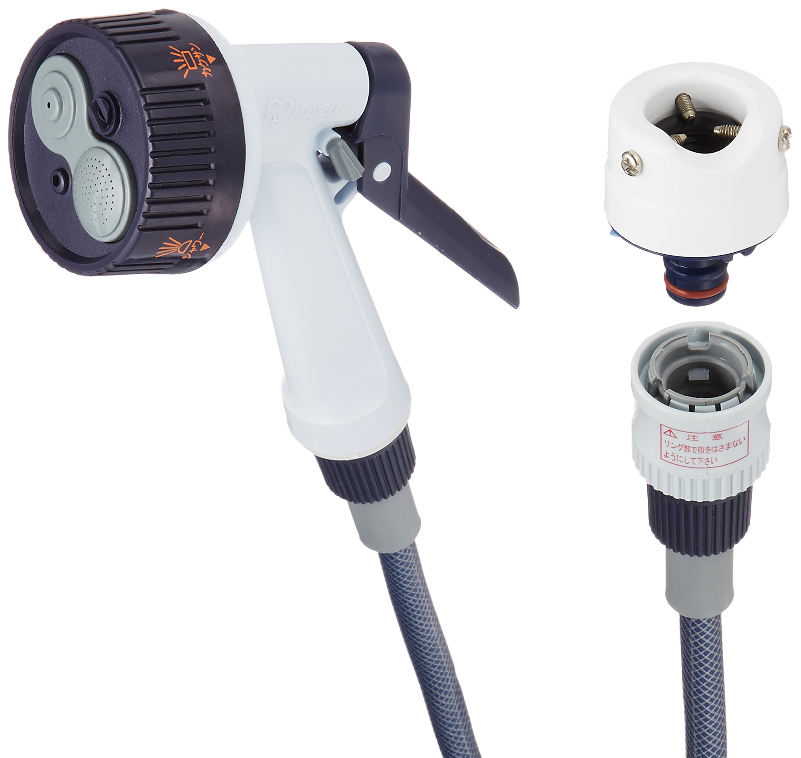 It is a cut hose with a convenient 4WAY aqua gun and a faucet cap set for a cold / pressure resistant hose for all seasons.