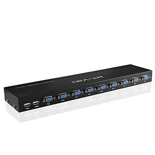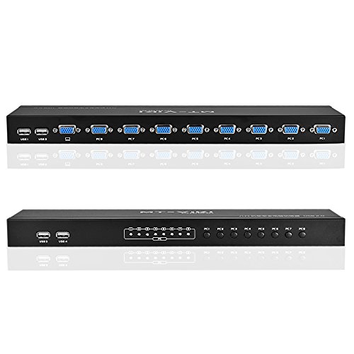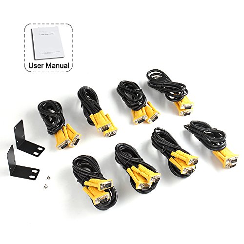 TNP 8 Port USB 2.0 KVM Switch Manual Selector Rack Mount Metal Box Adapter with 8 VGA USB KVM Cables for Computer PC Laptop Notebook Monitor Keyboard Mouse Black